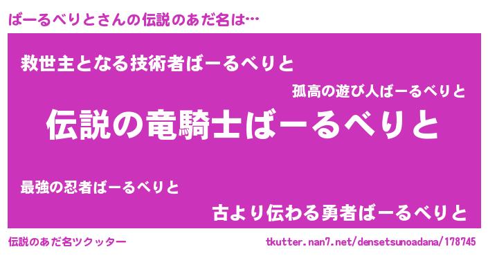 | ヘコむあだ名 | 『ばーにー』『ばーるべりと(小並感)』 |