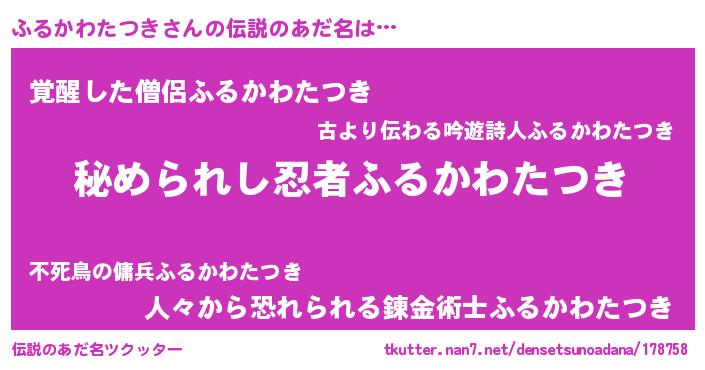 | 意味不明あだ名 | 『自称ふるかわたつき』 |