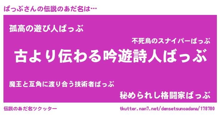 | 女子向けラノベタイトル風あだ名 | 『ばっぶの玉の輿計画!』『闇のばっぶ』 |