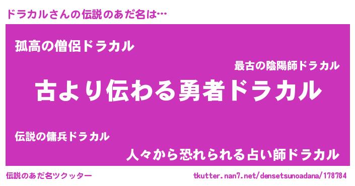 | 男性向けラノベタイトル風あだ名 | 『誰もが恐れるあのドラカルが、ぼくの専属メイドになるようです。』 |