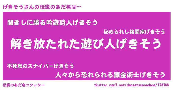 | 自動車の名前っぽいあだ名 | 『ゲルトキパン』『デミゲ』『ゲンR』 |