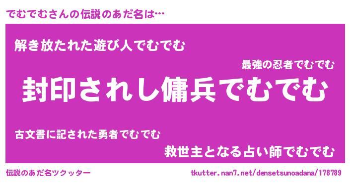 | 意味不明あだ名 | 『ペロリンでむでむ』『自称でむでむ』 |