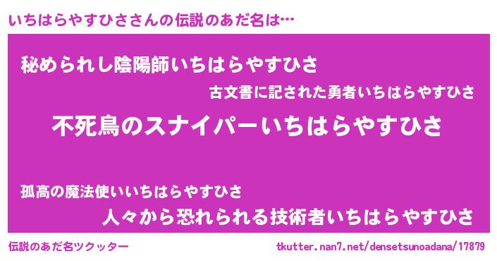 | 胡散臭い通販商品みたいなあだ名 | 『モテモテ間違いなし霊験あらたかなお札…その名も「いちはらやすひさ」』 |