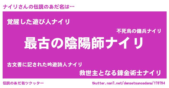 | ポケモン風あだ名 | 『ナイリダネ』『ヒナイリ』 |