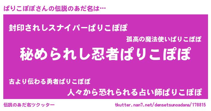 | 肩書あだ名 | 『ぱりこぽぽ少将』『ぱりこぽぽ総統』 |