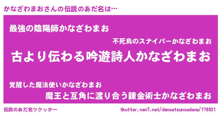 | 男性向けラノベタイトル風あだ名 | 『かなざわまおという概念が存在しない退屈な世界 』 |