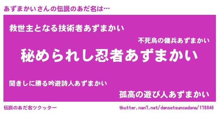 | ファンタジー風あだ名 | 『エターナルアズマカイー』 |