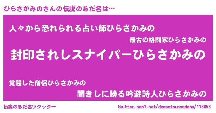 | 胡散臭い通販商品みたいなあだ名 | 『億万長者になれる霊験あらたかなお札…その名も「ひらさかみの」』 |