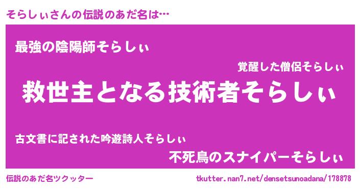 | ファンタジー風あだ名 | 『クインソット』『エターナルソラシィー』 |