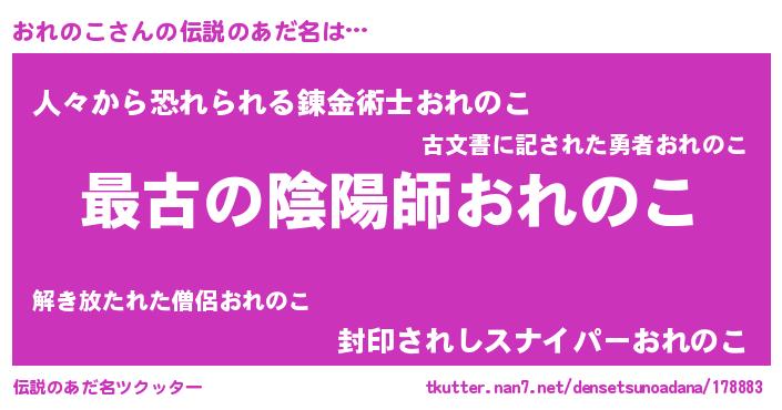 | 意味不明あだ名 | 『おれのこフォーエバー』 |