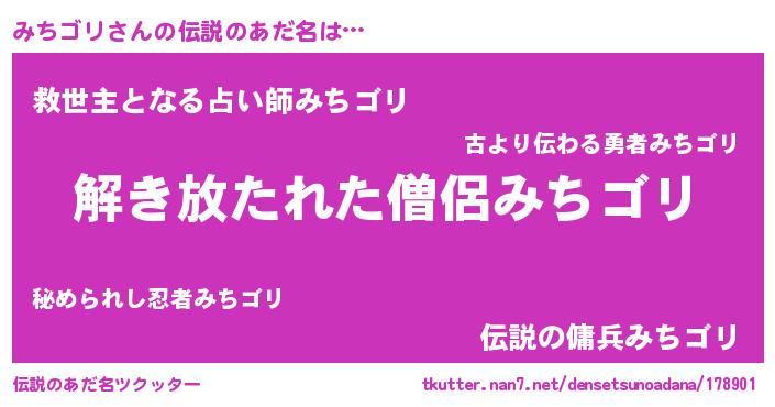 | 意味不明あだ名 | 『とにかく怪しいみちゴリ』 |