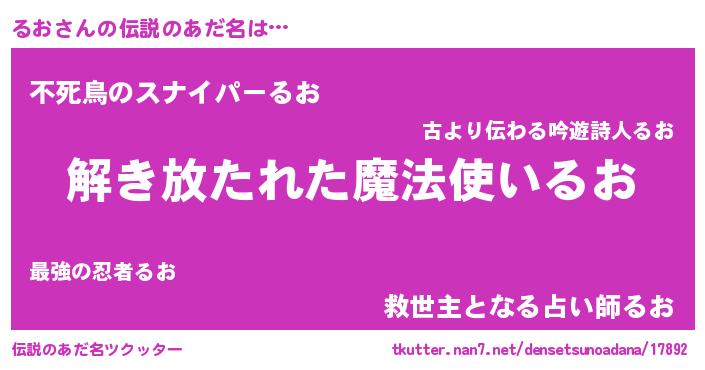 | 男性向けラノベタイトル風あだ名 | 『るおに滅ぼされるだけの簡単なお仕事です』 |