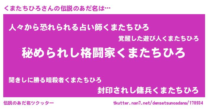 | ファンタジー風あだ名 | 『エターナルクマタチヒロー』 |