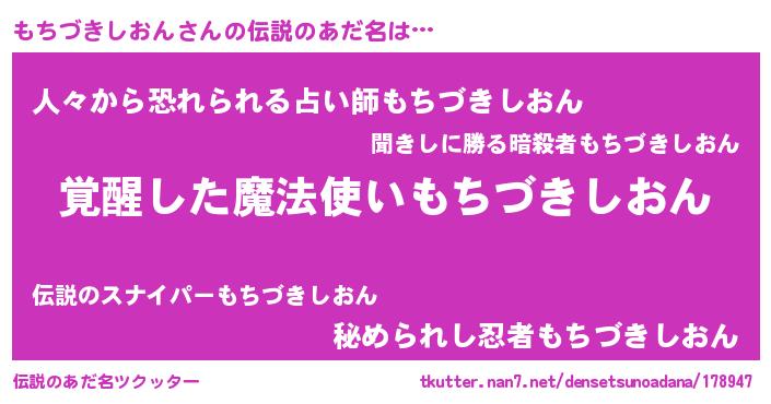 | 意味不明あだ名 | 『とにかく怪しいもちづきしおん』 |