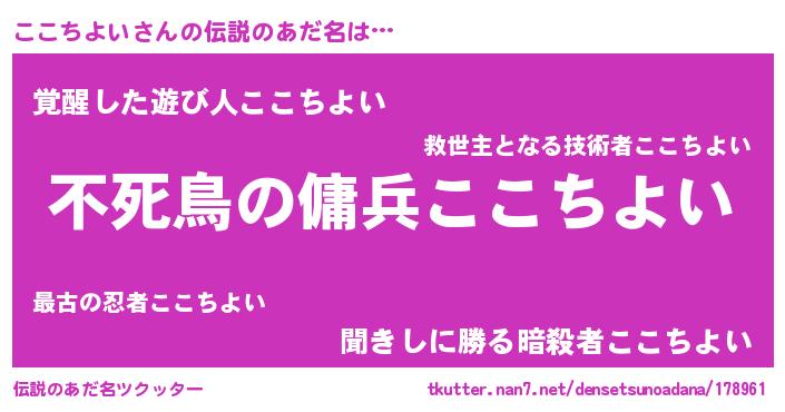 | ポケモン風あだ名 | 『ココチュウ』『ヒココチヨイ』 |