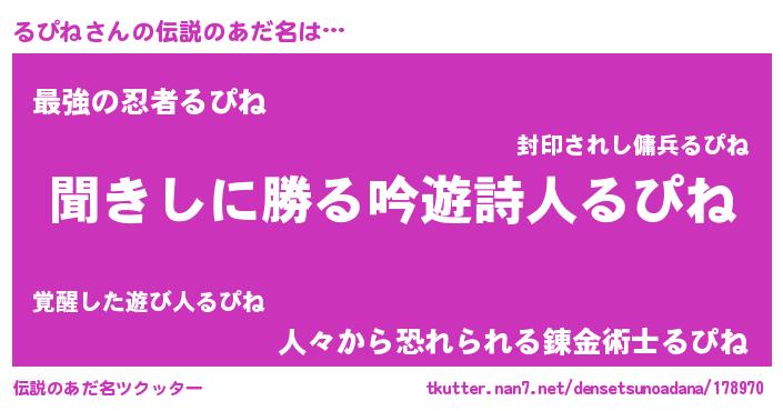 | 男性向けラノベタイトル風あだ名 | 『るぴねという概念が存在しない退屈な世界 』 |