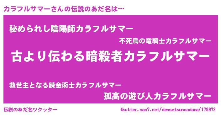 | ヒーロー風カッコイイあだ名 | 『ネオカラフルサマー』『暗黒騎士カラ』 |