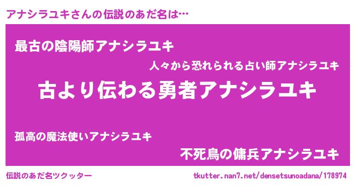 | 胡散臭い通販商品みたいなあだ名 | 『来世でも幸せになれる水素水…その名も「アナシラユキ」』 |