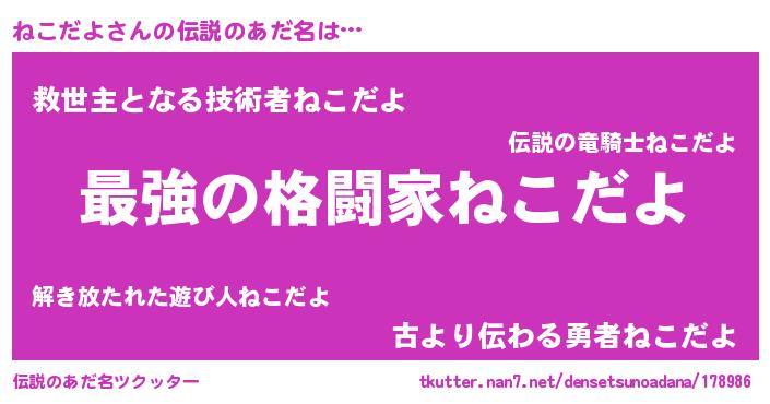 | 意味不明あだ名 | 『ねこだよフォーエバー』『自称ねこだよ』 |