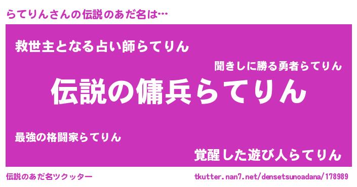 | 肩書あだ名 | 『らてりん閣下』『らてりん御曹司』 |