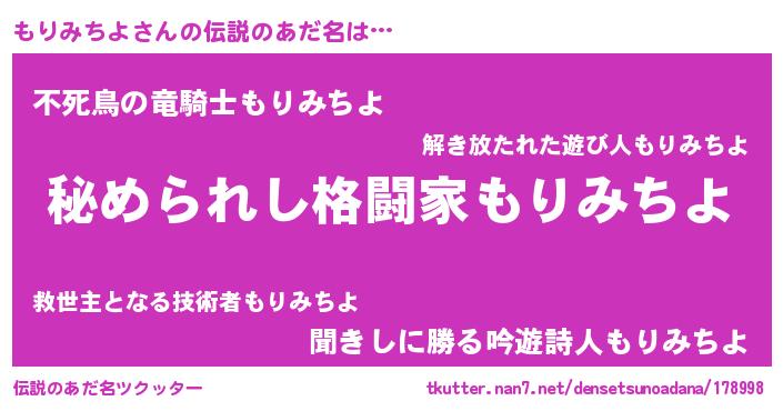 | 意味不明あだ名 | 『住所不定無職もりみちよ(9歳)』 |