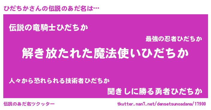 | 男性向けラノベタイトル風あだ名 | 『転生したらひだちかだった件』 |