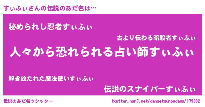 | ヒーロー風カッコイイあだ名 | 『正義の使者すぃふぃ』『仮面スィダー』 |