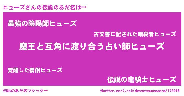 | ファンタジー風あだ名 | 『クインヒット』『エターナルヒューズー』 |