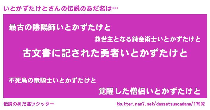 | ヒーロー風カッコイイあだ名 | 『ネオイトカズタケト』『天弓騎士イト』 |
