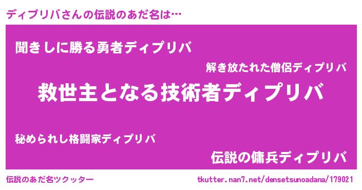 | 女子向けラノベタイトル風あだ名 | 『ディプリバの玉の輿計画!』 |