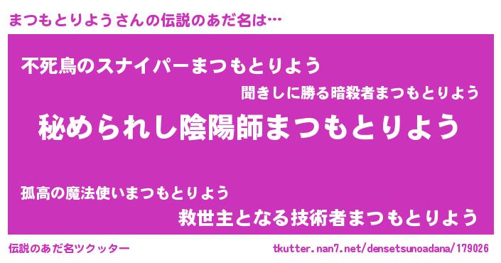 | 肩書あだ名 | 『まつもとりよう中将』 |