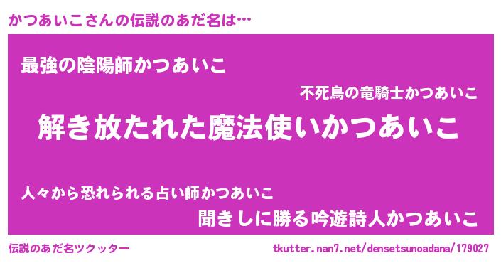 | 男性向けラノベタイトル風あだ名 | 『転生したらかつあいこだった件』 |