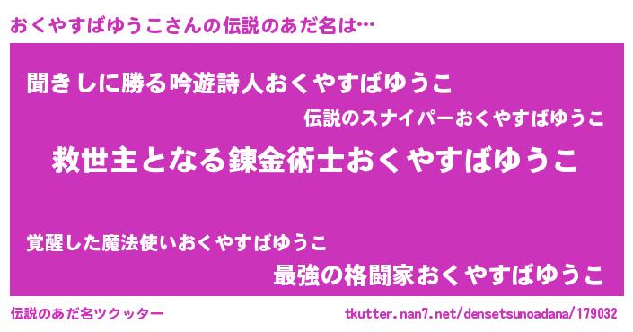 | ヒーロー風カッコイイあだ名 | 『天空の使者おくやすばゆうこ』 |
