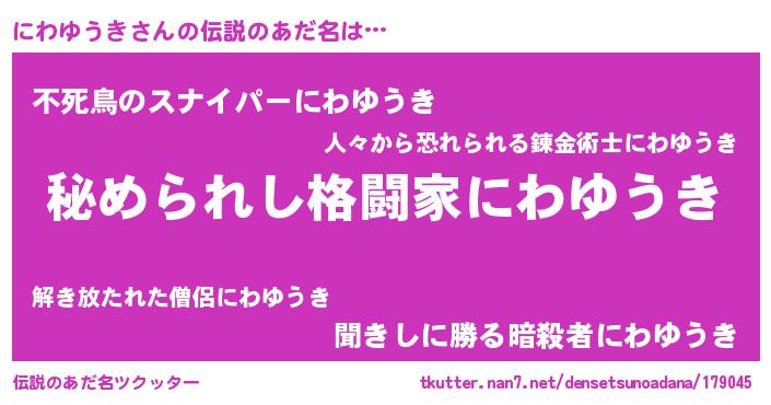 | 意味不明あだ名 | 『にわゆうきフォーエバー』 |