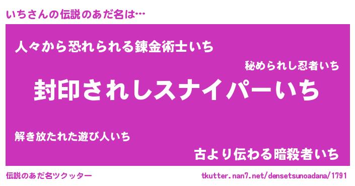 | 胡散臭い通販商品みたいなあだ名 | 『億万長者になれる霊験あらたかなお札…その名も「いち」』 |