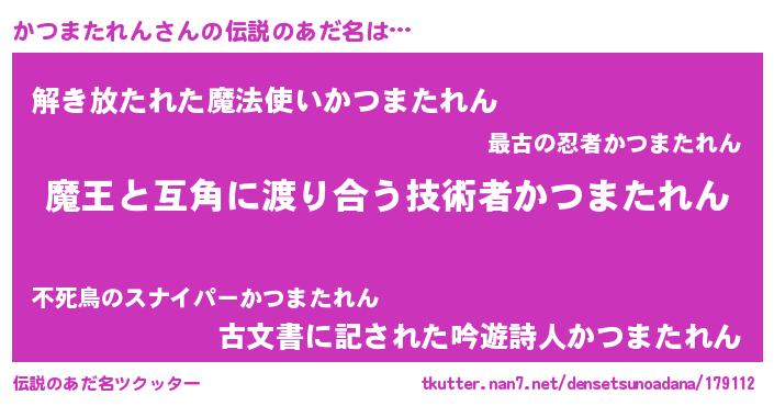 | ヘコむあだ名 | 『かつ太郎』『かつまたれん(小並感)』 |