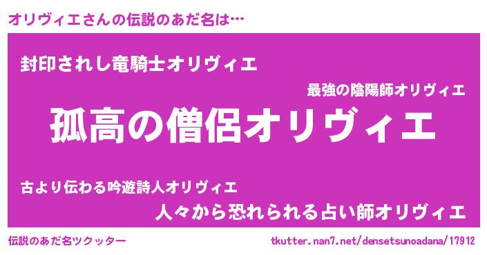 | 意味不明あだ名 | 『住所不定無職オリヴィエ(50歳)』 |