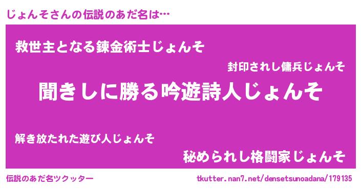 | ヘコむあだ名 | 『じょんそ(笑)』『酢こんぶ』 |