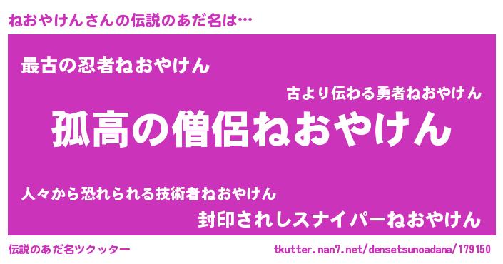 | 肩書あだ名 | 『ねおやけん艦長』『ねおやけん大尉』 |