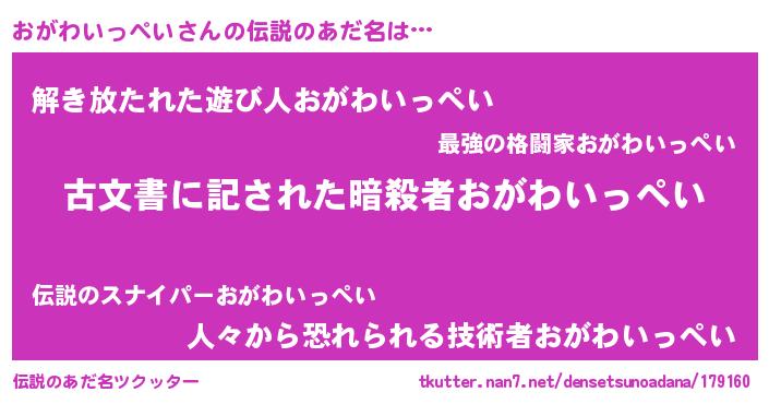 | 欧米人風あだ名 | 『おがわいっぺい・ステッグマイヤー』 |