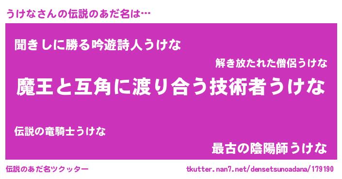 | ヒーロー風カッコイイあだ名 | 『愛の使者うけな』『ネオウケナ』 |