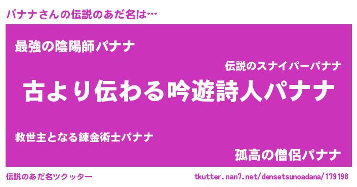 | ファンタジー風あだ名 | 『パナディッシュ』『エターナルパナナー』 |
