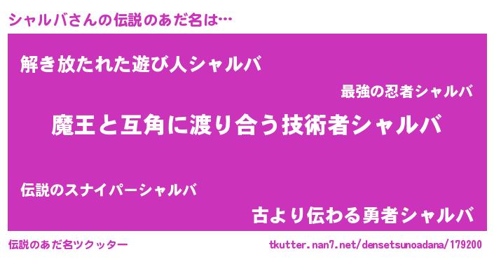 | ヒーロー風カッコイイあだ名 | 『慈愛の使者シャルバ』『魔戒騎士シャ』 |