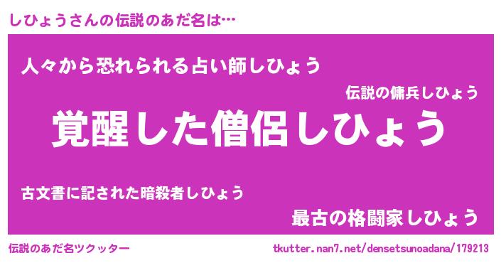| ヒーロー風カッコイイあだ名 | 『炎刃騎士シヒ』『正義の使者しひょう』 |