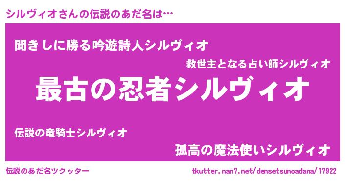 | ファンタジー風あだ名 | 『エターナルシルヴィオー』『ゼシルトゥ』 |