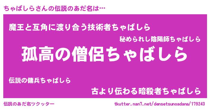 | 意味不明あだ名 | 『住所不定無職ちゃばしら(40歳)』 |