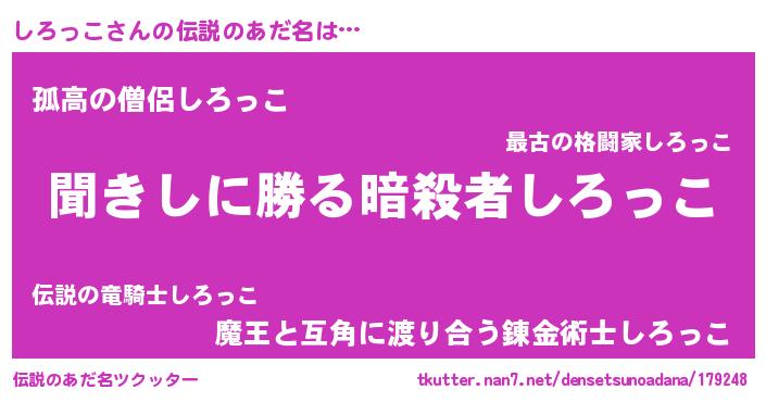 | ヘコむあだ名 | 『しろっこ(笑)』『しろっちょ』 |