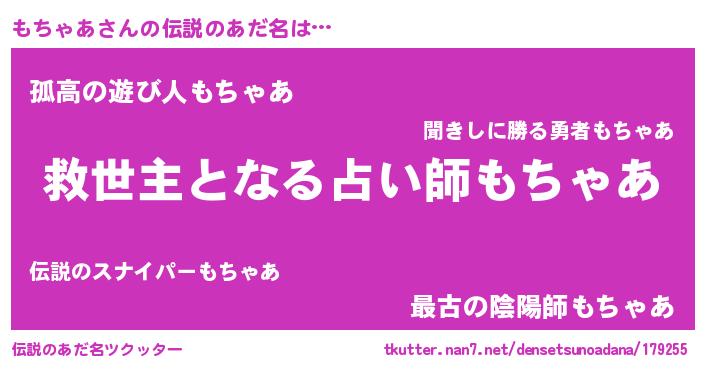 | ヒーロー風カッコイイあだ名 | 『天空の使者もちゃあ』『暗黒騎士モチ』 |