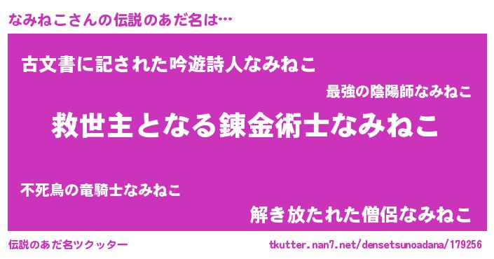 | ヒーロー風カッコイイあだ名 | 『仮面ナミダー』『サイバー戦士ナミネコ』 |