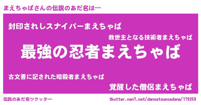 | 意味不明あだ名 | 『まえちゃばフォーエバー』 |